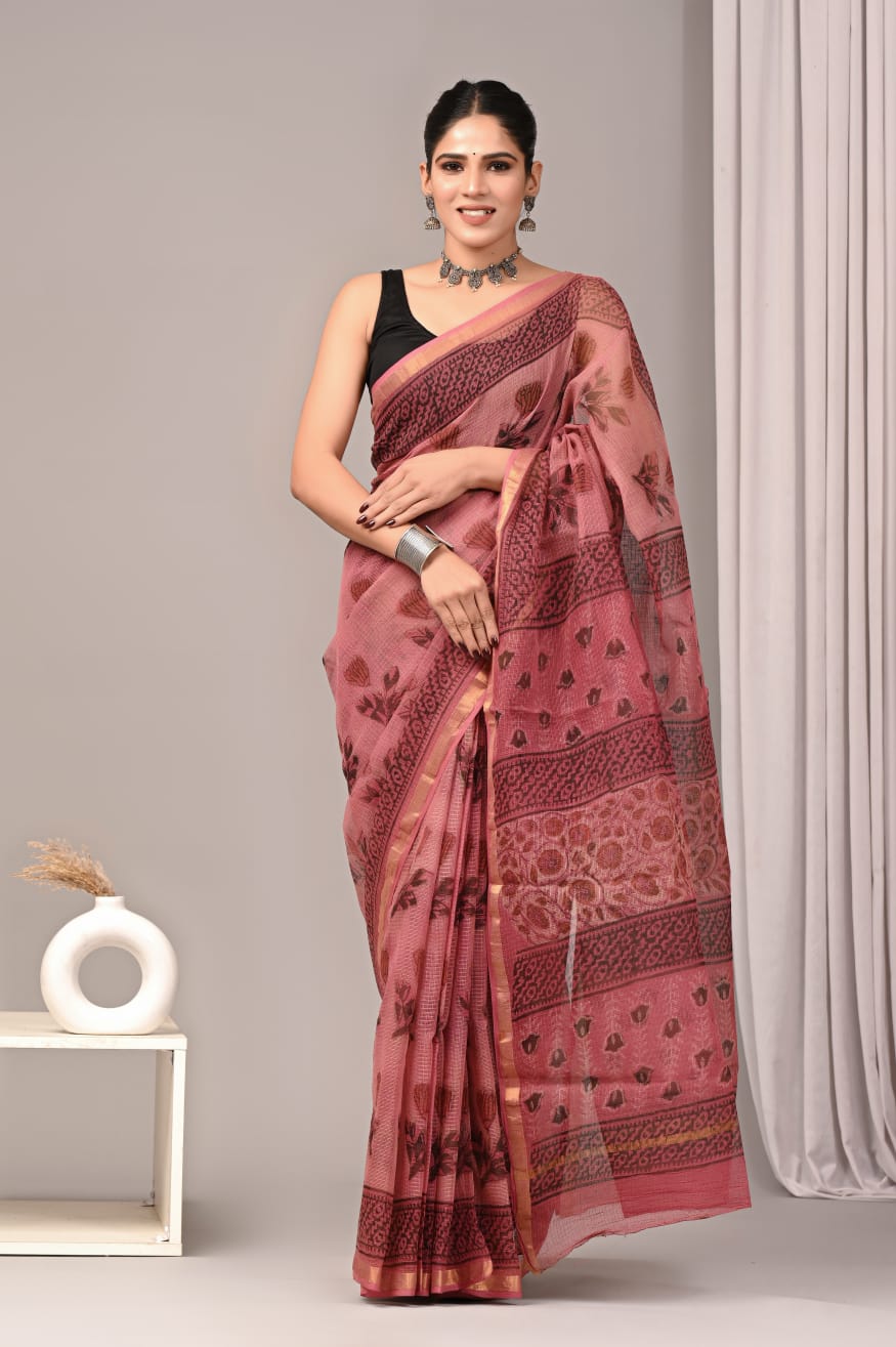 New Unique collection of Colourful Hand block printed kota doriya sarees with blouse.