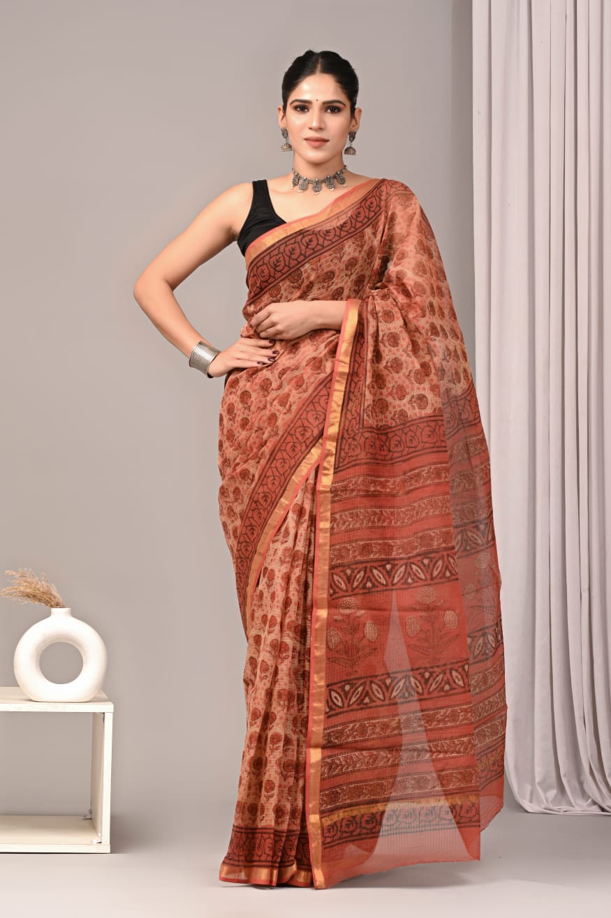 New Unique collection of Colourful Hand block printed kota doriya sarees with blouse.