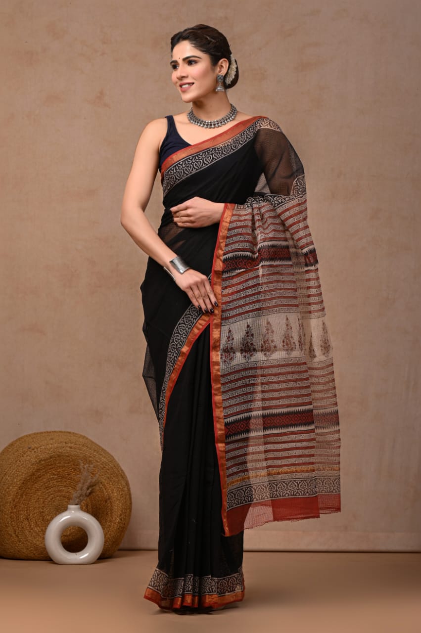 New Unique collection of Colourful Hand block printed kota doriya sarees with blouse.