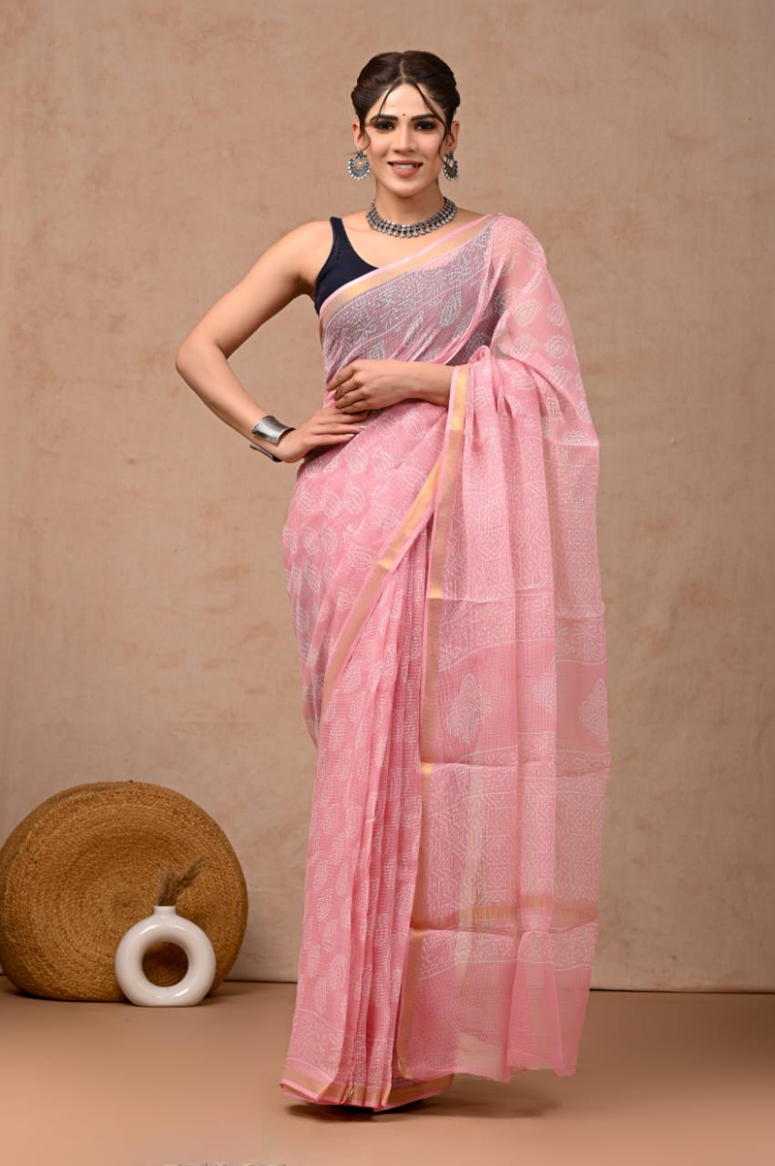 New Unique collection of Colourful Hand block printed kota doriya sarees with blouse.