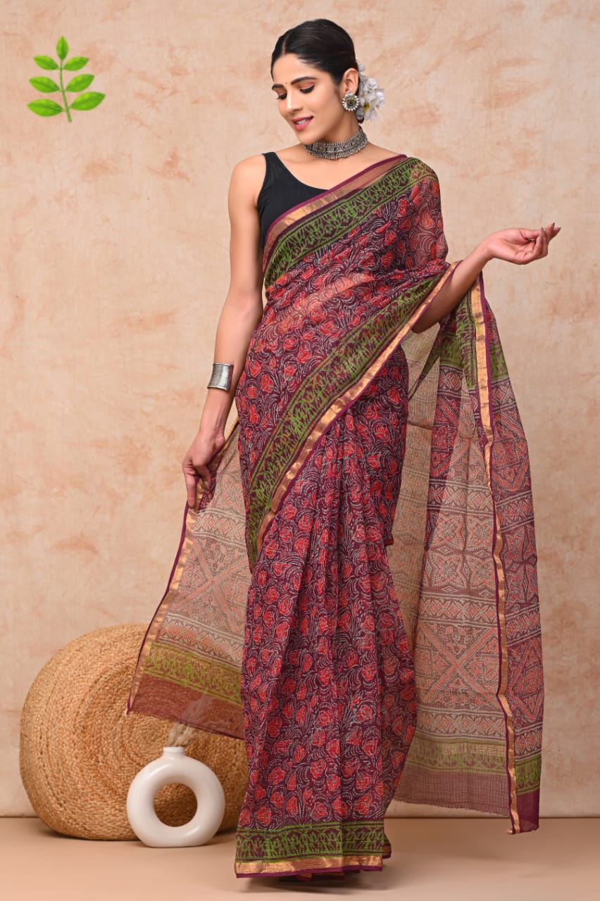 New Unique collection of Colourful Hand block printed kota doriya sarees with blouse.