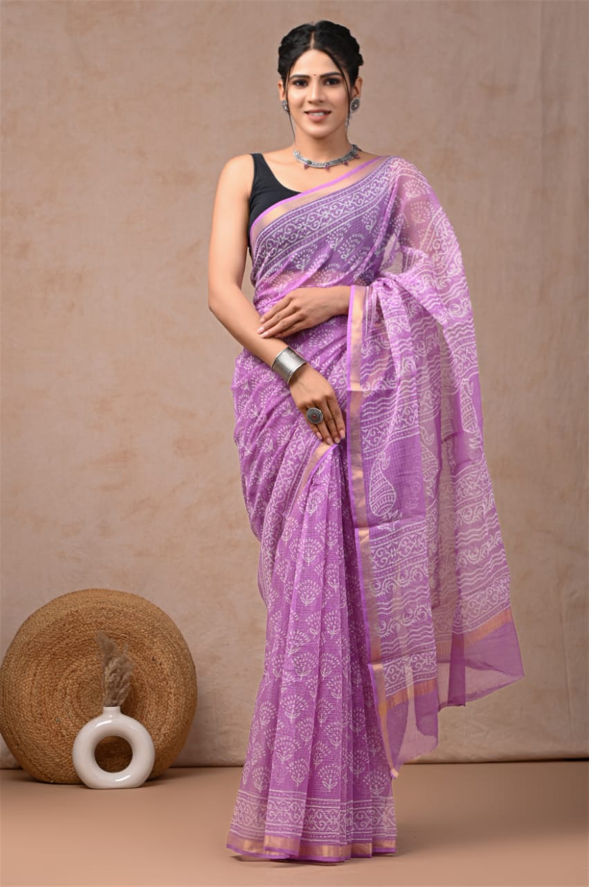 New Unique collection of Colourful Hand block printed kota doriya sarees with blouse.